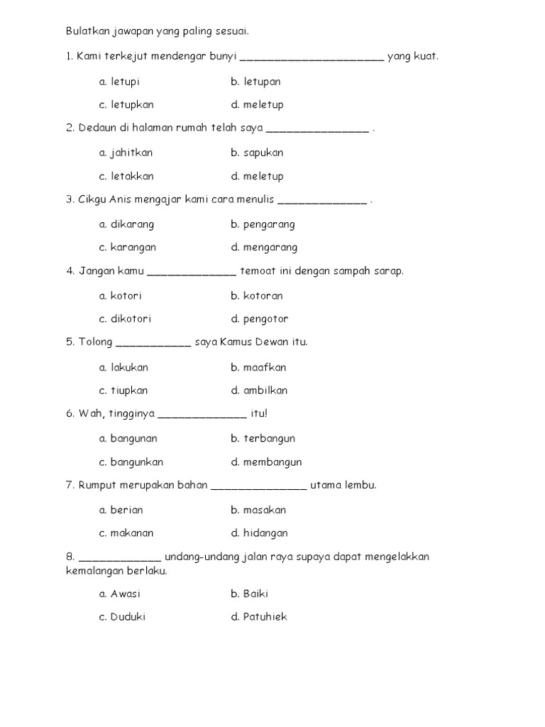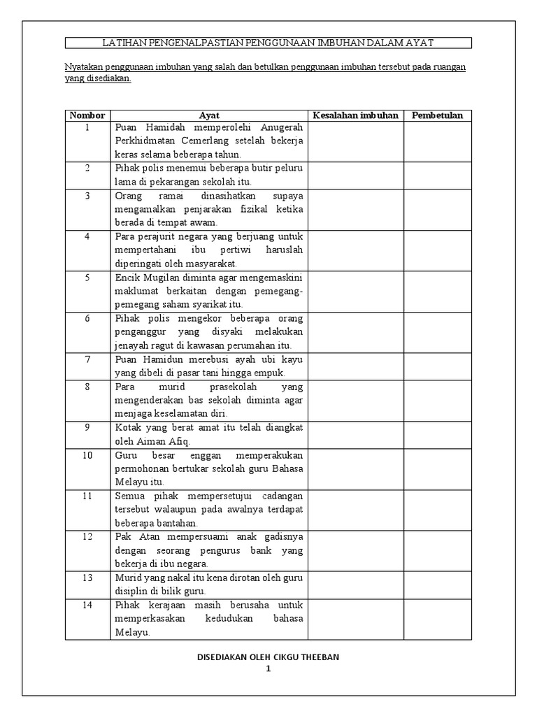 Nota Tuisyen Bahasa Melayu Tingkatan 1 April Words Microsoft Word Microsoft. Membetulkan ayat-ayat yang mengandungi kesalahan ejaan dan imbuhan tanpa mengubah struktur dan maksud asalnya. Latihan Kesalahan Ejan dan Imbuhan Baca petikan di bawah dengan teliti kemudian betulkan 10 kesalahan ejaan dan 10 kesalahan imbuhan dalam petikan di bawah.